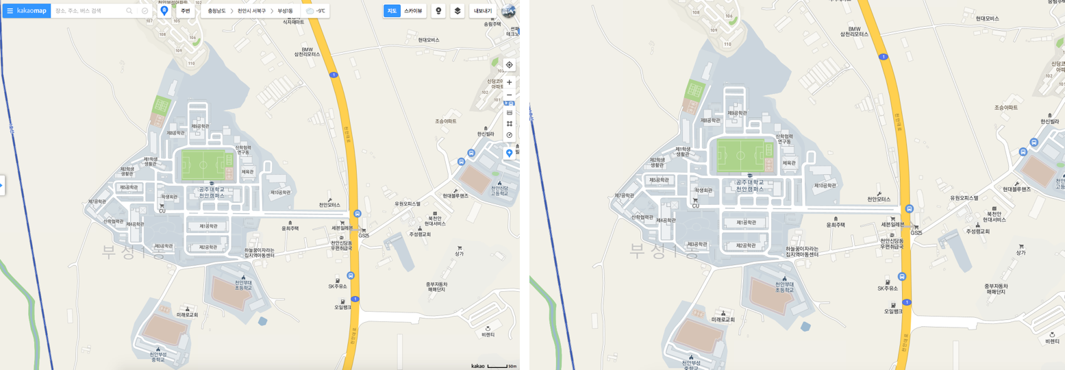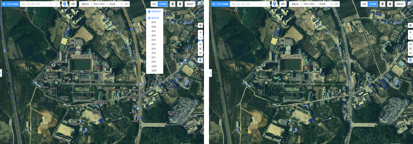 - 도로의 기하구조를 파악할 수 있는 naver 또는 kakao의 위성지도를 활용한다.