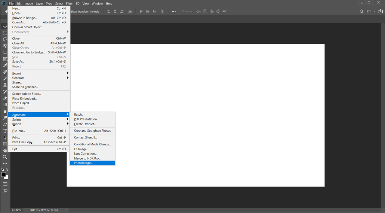 하나의 사진으로 만들기 위해 포토샵 내의 Photo merge기능을 활용할 것이다.