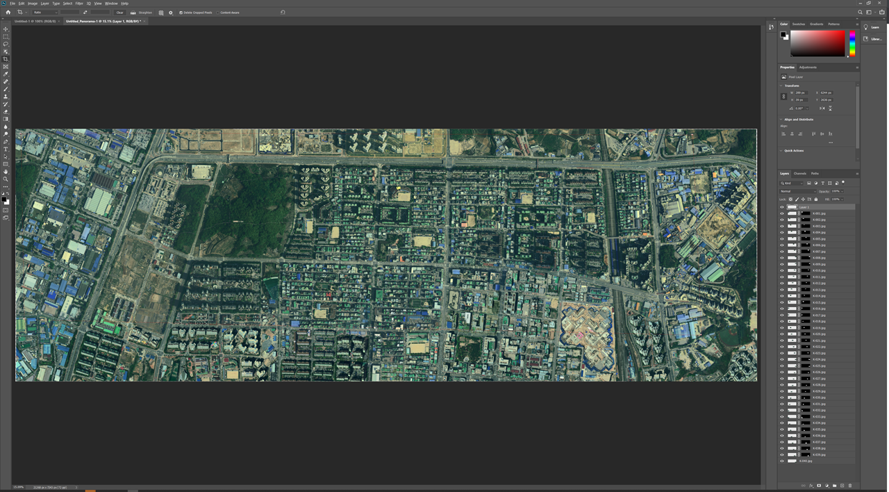 Photomerge 작업이 완료되면 아래와 같이 잘 이어 붙여진 basemap을 얻을수 있다.