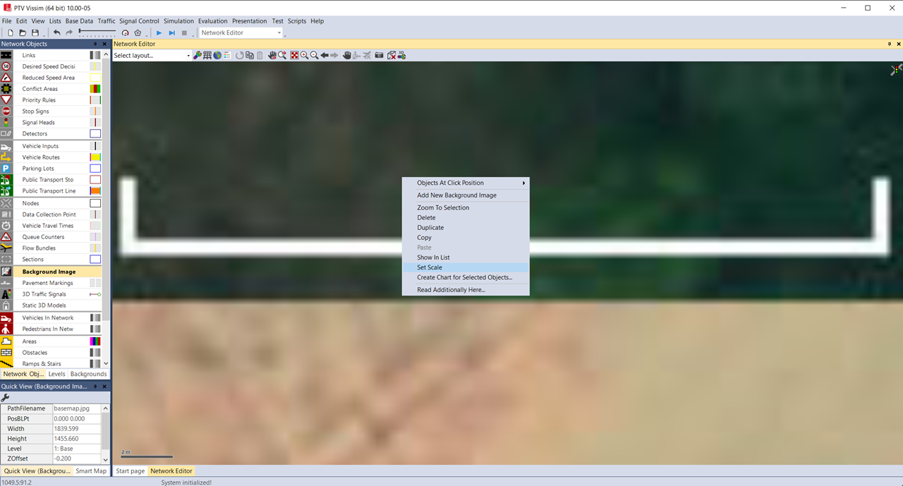 위 과정을 시행하면, 아래와 같이 이미지가 Vissim내에 삽입된 것을 볼 수 있다.