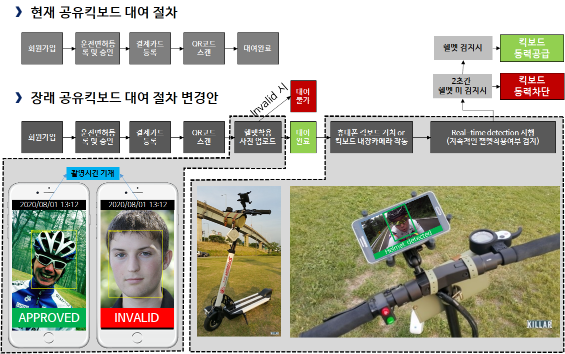 따라서, 본 연구에서는 확대되는 이용객 범위 및 증가하는 PM의 공급량으로 인해 증가 될수있는 사고의 심각도를 최소화 하기위해 이미지 인식기술을 활용 및 시민의식(귀찮음, 아무도안해서) 개선으로 헬멧 이용율를 증진시키고자 한다.