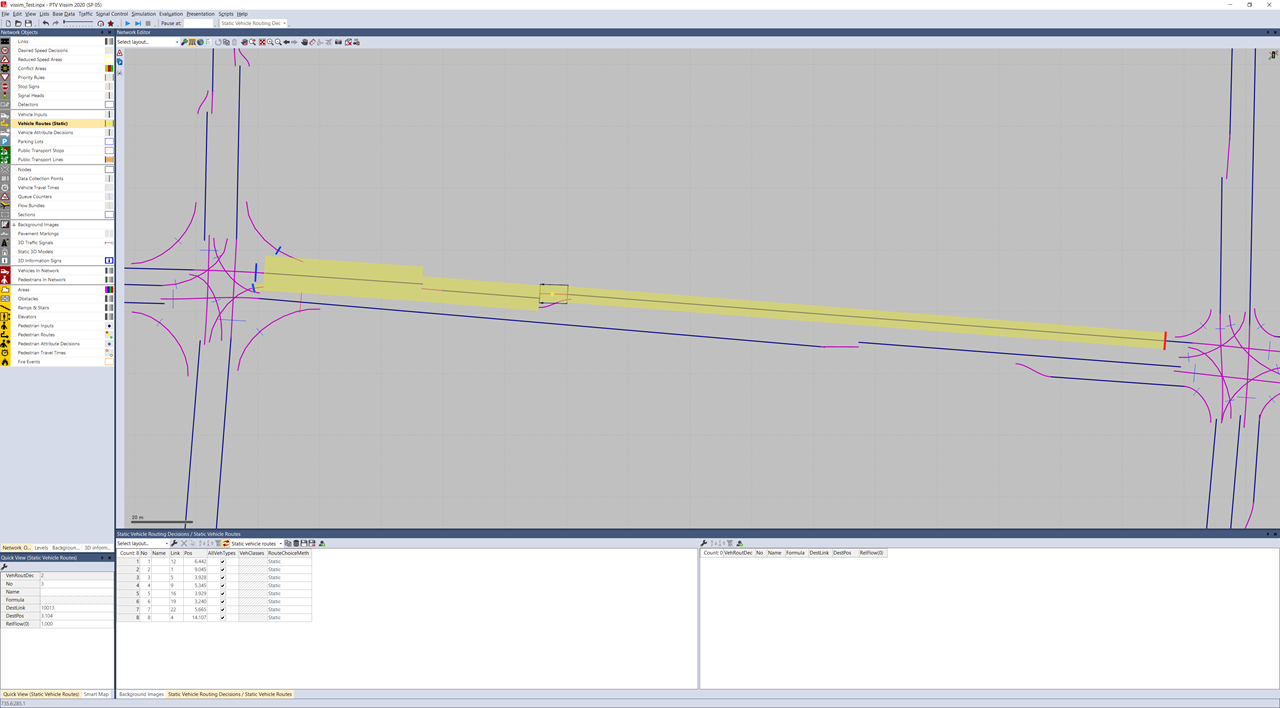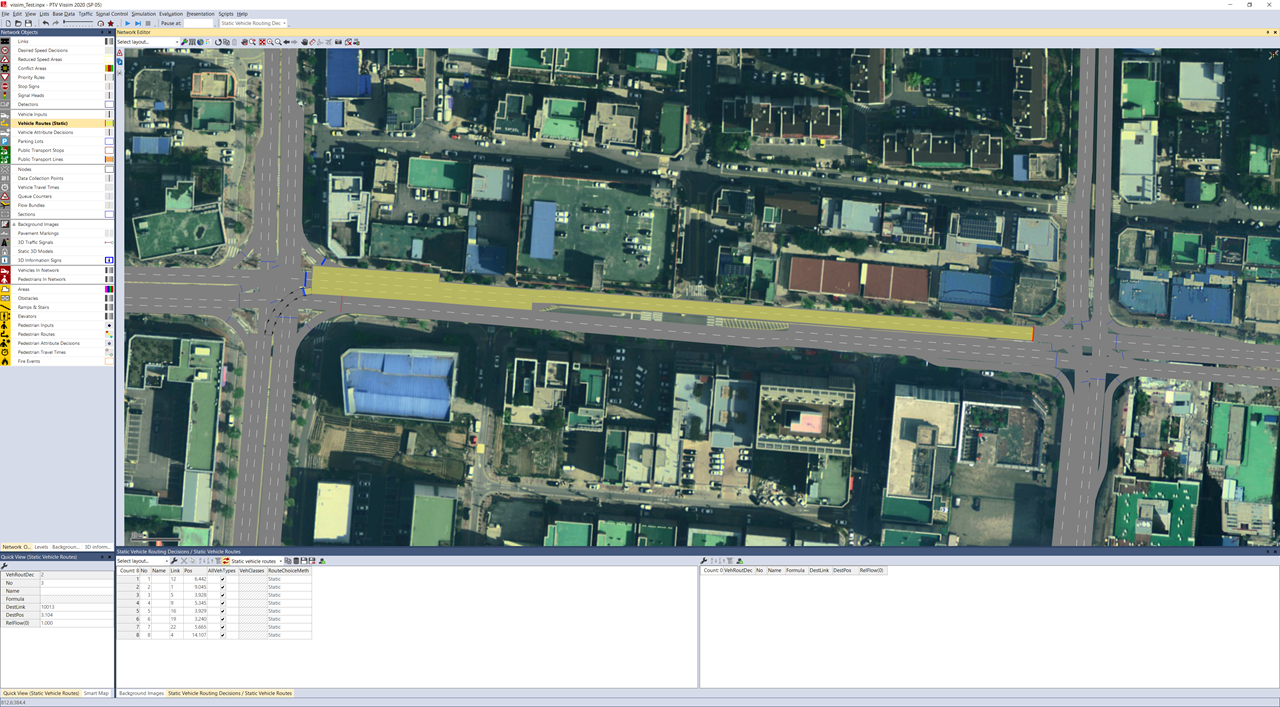 따라서, 주어진대로 운행하는 시뮬레이션 차량에게 차선변경을 위한 시간을 미리 주어야한다. 이때 그 역할을 하는 것이 Route의 시작점이라고 볼수 있다. 그러므로 시작점은 최대한 교차로에서 멀리 위치하는 것이 좋다. - Route의 끝점은 Link 위가 아닌 Connector에 위치하는 것이 바람직하다.