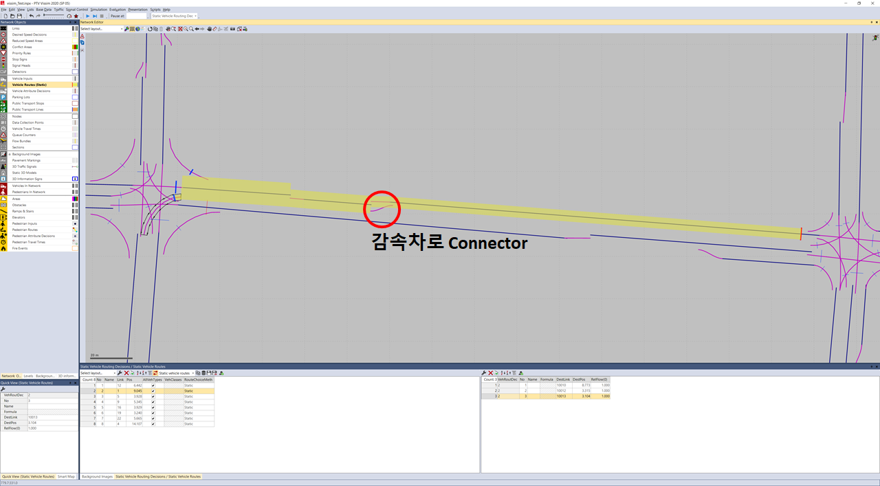 특정경로 입력이다. 이는 차량이 특정 Connector 또는 Link로 가게하여, 시뮬레이션을 보다 현실적으로 하기 위함이다.