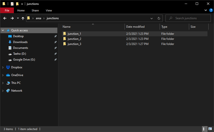 아래와 같이 area폴더 안에 junctions 폴더가 있고 그안에 junction_1, junction_2, junction_3등의 하위폴더가 있는 구조로 우리가 가져올 파일들의 정보가 각 폴더에 나뉘어져 있다면