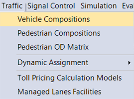 Vehicle Composition입력을 위해서는 Traffic -> Vehicle Composition 으로 간다.
