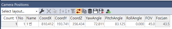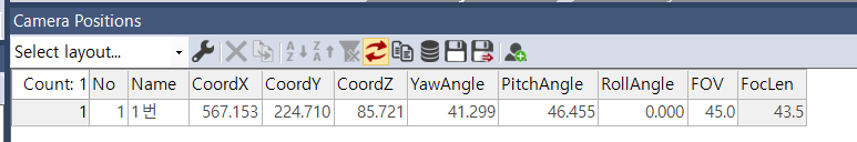 본 글에서는 Camera Position을 단순히 1번, 2번 순으로 입력하였다.