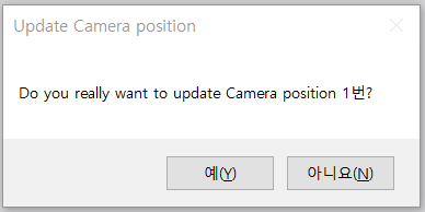 Camera Position을 수정하고 싶다면, 지우고 새로 만들필요 없이 수정하고자 하는 Camera Position을 선택하고 새로운 구도로 화면을 설정하고 Camera Position 생성을 위해 입력했던 빈칸에 커서를 놓고 엔터를 치고 "예"를 클릭하면 기존의 Camera Position은 새로운 구도로 수정된다.