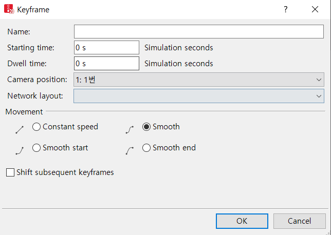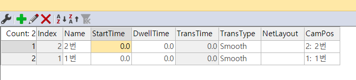 Strat Time은 해당 구도가 시작될 simulation 시간이고, Dwell Time은 해당 구도에서 얼마동안 머무를지를 결정한다.