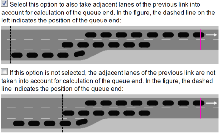 위의 Queue counter 설정에서 볼 수 있듯이 인접차선을 같이 고려하여 대기행렬을 반영 할 수 있다.