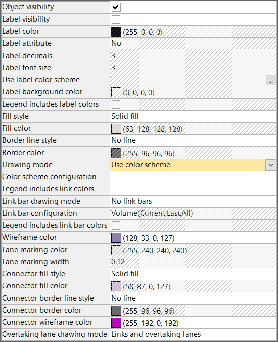 Object의 색상을 변경하기 위해서는 Vissim에서 기본적으로 제공하는 Display type은 Graphic parameter 설정에서 drawing mode를 통해 변경이 가능하다.