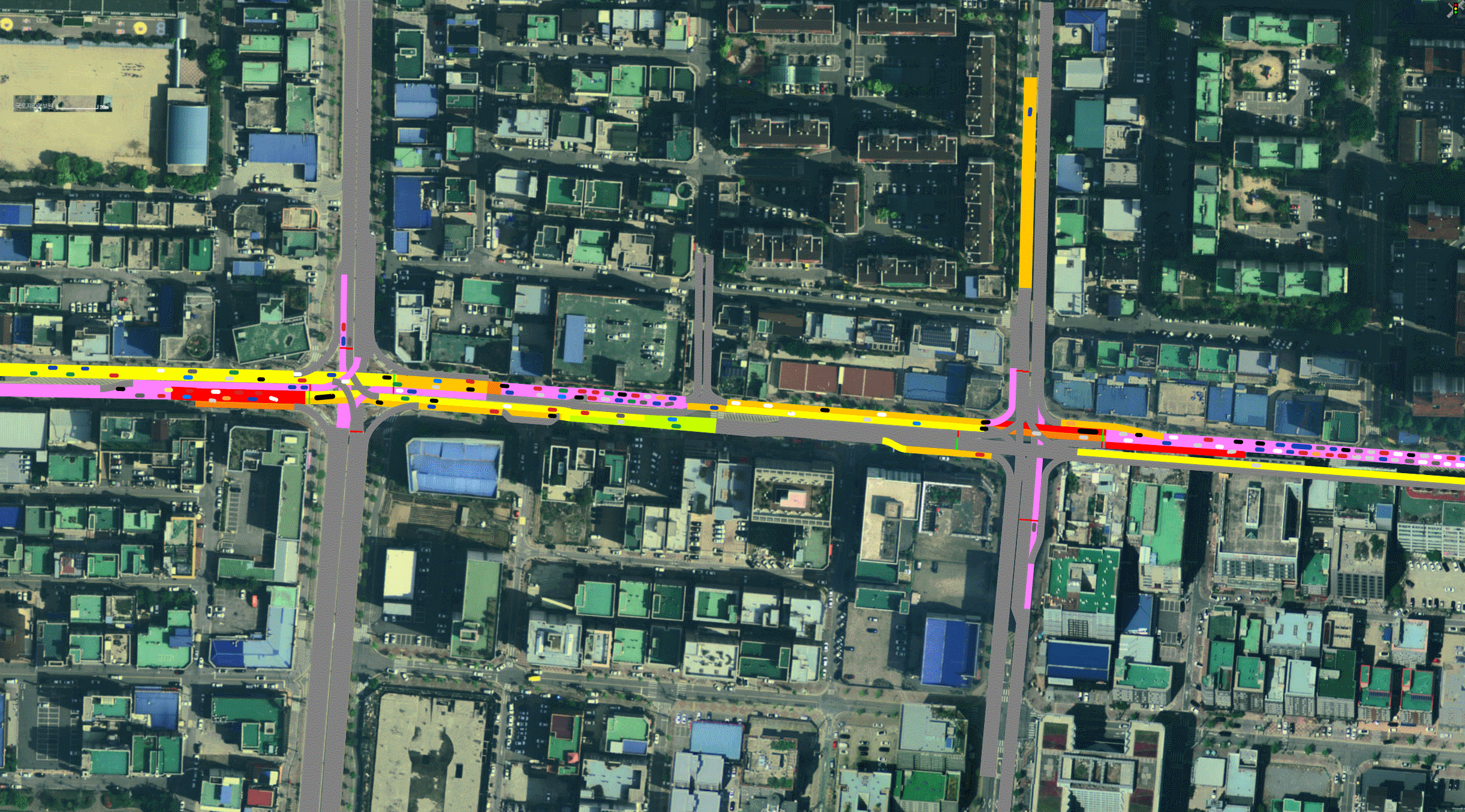 예를 들어, Link 구축 시 Link 및 Connector에 반투명 색상적용 및 버스 전용차로도 별도의 색상으로 표시하고 싶은 경우이다(아래 그림 참고).