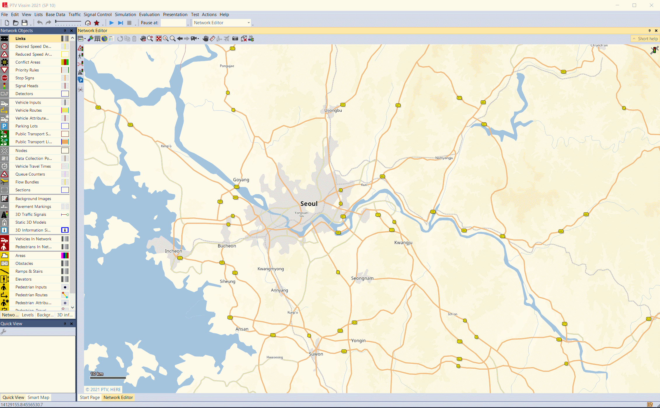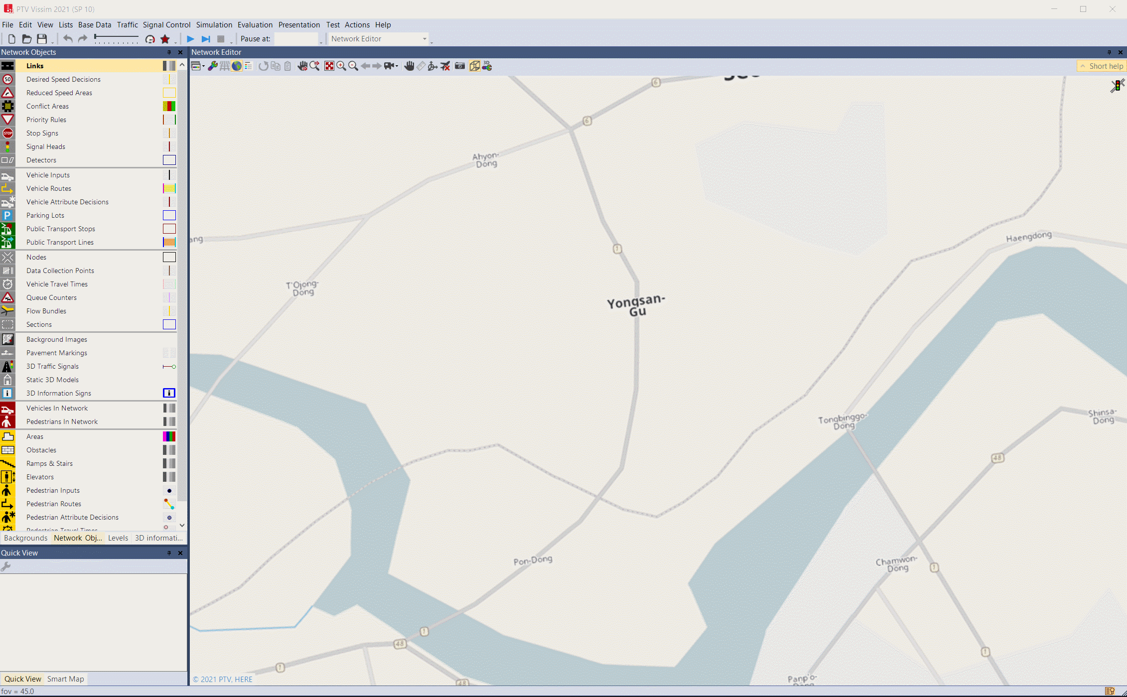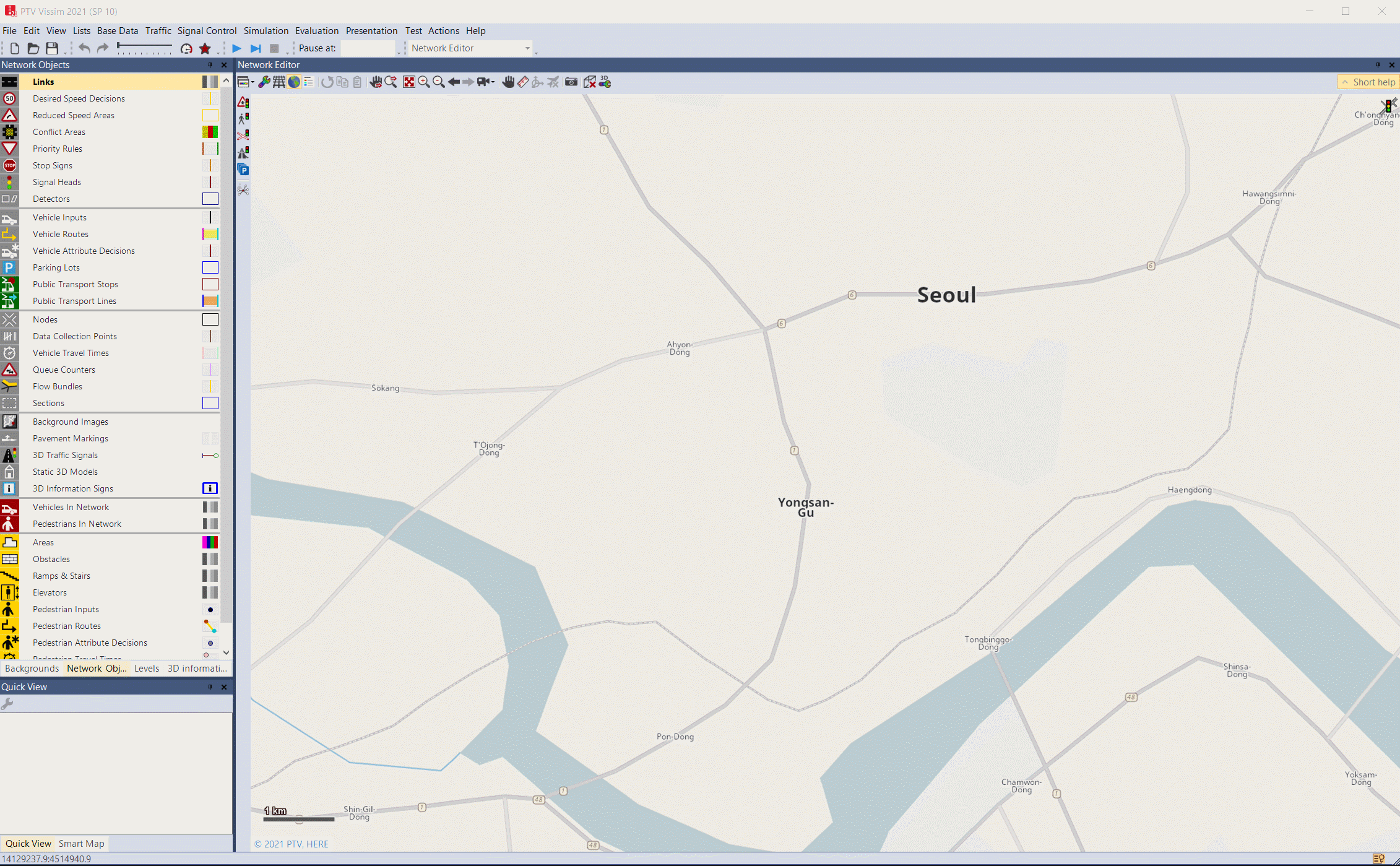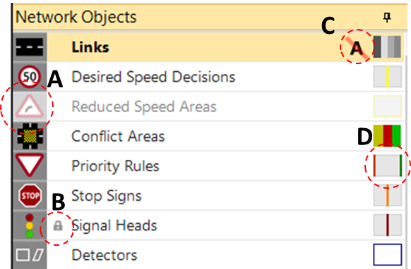 Network Objects는 Vissim simulation network 구축을 위한 구성요소이다. 원하는 Object를 클릭하고 Network editor에 생성을하며 시뮬레이션 구축을 수행한다.
