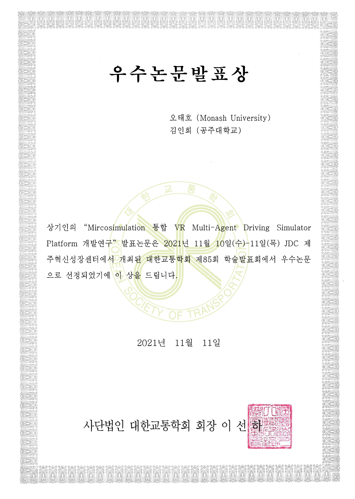 | 2023년 한국 ITS학회- 춘계학술대회 우수논문상 수상 (0) | 2023.05.24 |
