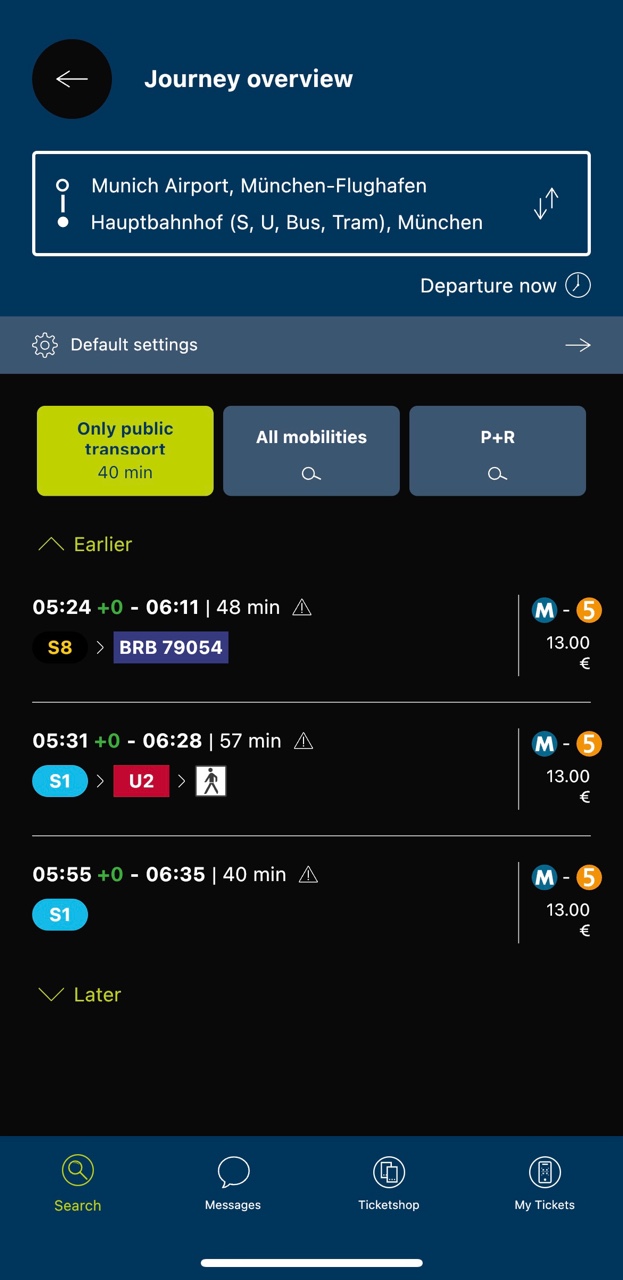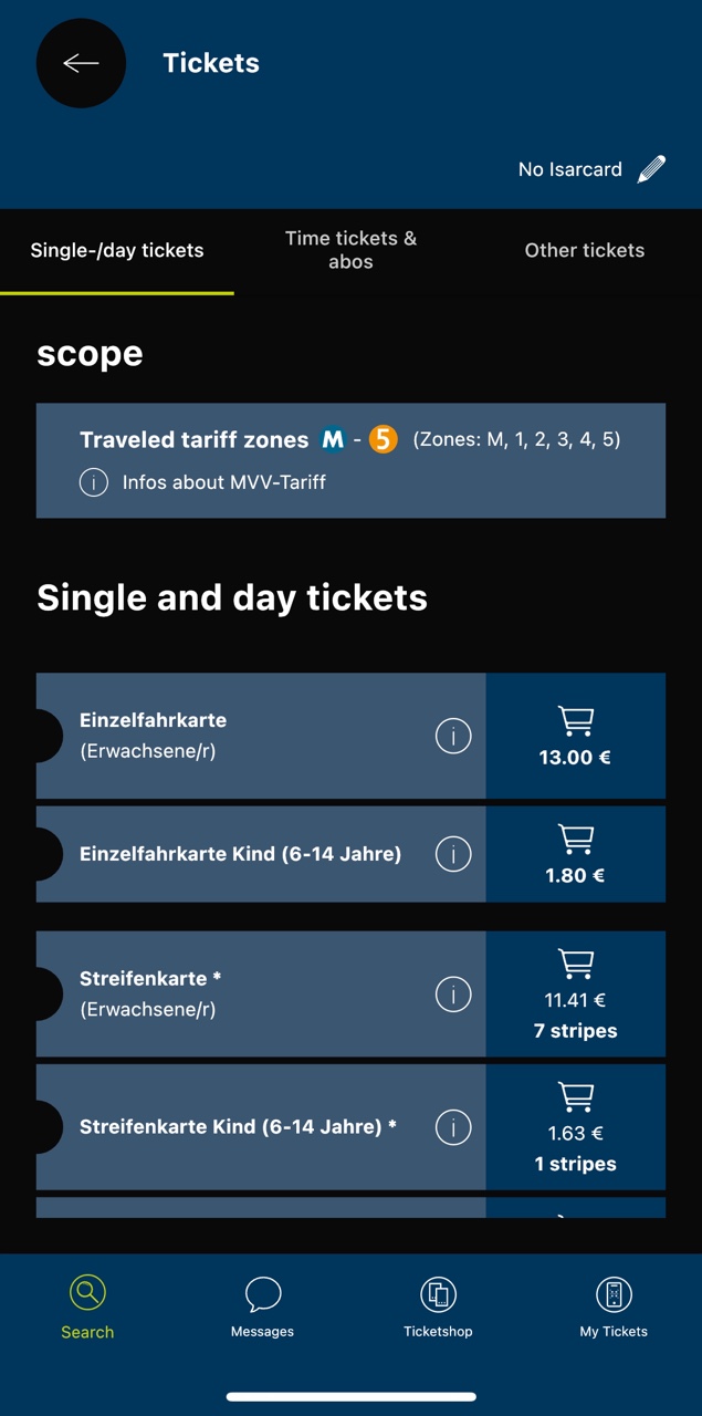 따라서 결론은 지역 내 대중교통이용을 위해서는 MVV앱을 활용하는 것을 추천한다.