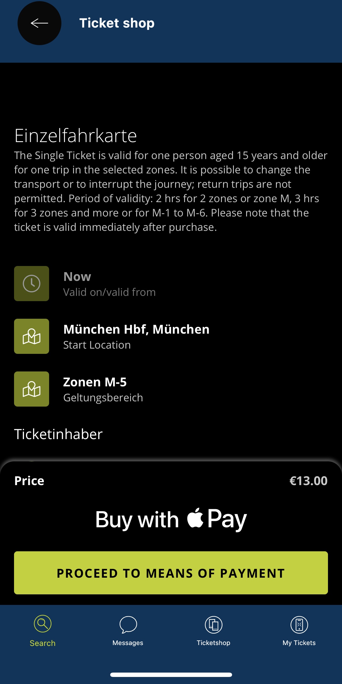 이것이 이 앱의 가장 큰 단점이다. 티켓을 구매하는 창이 독일어로 되어있어 어떤 티켓을 사야하는지 어려움이 있다.