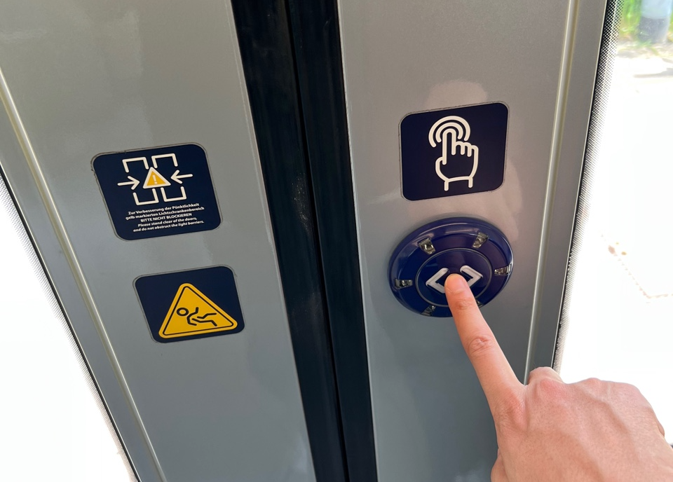 추가로 열차에서 탑승 및 하차 시 문이 안열린다면, 아래 그림과 같이 문에 붙어있는 버튼을 누르면 문이 열린다.