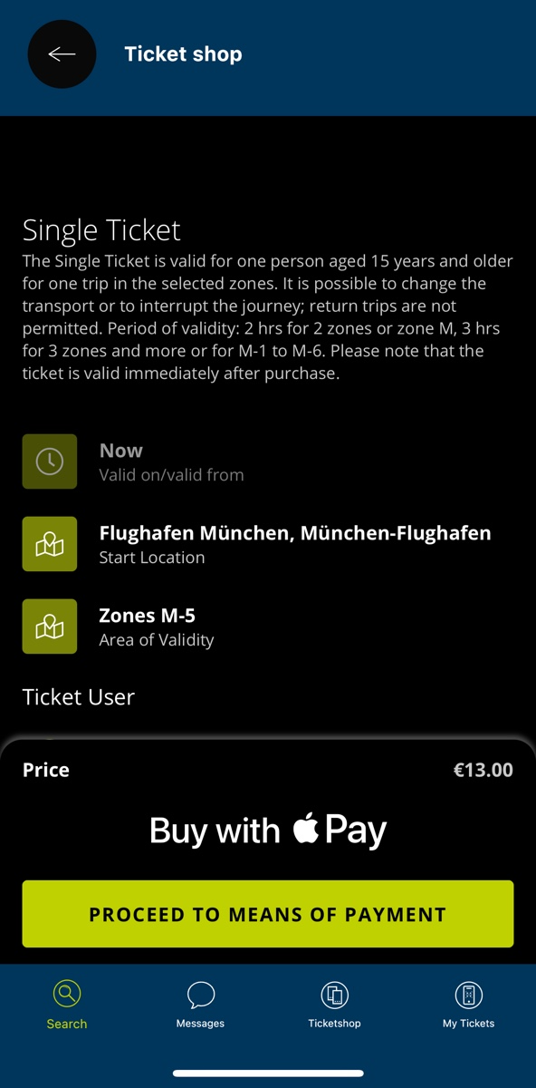 MVV앱의 경우에는 도시 내 대중교통을 타고 이동하는데 아주 특화되어있어 이 앱 덕분에 모든 목적지를 아주 원활하게 다녔다. 하나의 단점은 티켓구매 화면 및 돌발정보를 독일어로 제공한다는 것이다. 그러나, 티켓 구매화면을 보면 이거다 싶은 것이 있어 사용하는데 크게 어렵지 않았으며, 돌발정보는 캡쳐 후 번역기를 사용하여 충분히 문제극복 할 수 있었다.